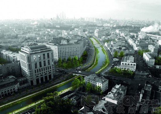 俄羅斯公司Project Meganom近日參加了改造莫斯科市河畔的設計競賽并且獲得優勝。他們的總體規劃師在河岸創建一系列線性綠地, 同時也將新的文化和教育空間納入河畔地區,并且改善周邊的交通狀況。在今天(2014年12月11日)早些時候開幕的第四屆莫斯科城市論壇上,該設計競賽的目標為“將莫斯科河從一處‘障礙’變為城市‘連接點’”,恢復其作為城市心臟和最重要交通路線的歷史地位。
