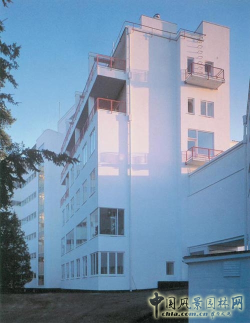 建筑的色彩也經過細致研究。最底層采用黑色花崗巖,和白色墻面形成強烈對比,陽臺的玫瑰色欄板使得建筑簡潔的線條充滿跳躍的動感。室內采用淡雅的色彩,充分考慮到了病人的起居需求。