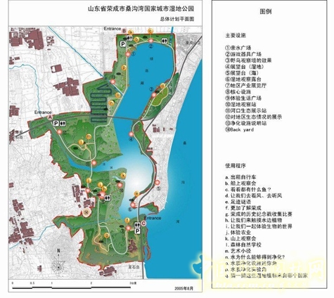 桑溝灣國家城市濕地公園,位于榮成市市區東南部,北起龍島湖北岸、虎山大道南側,南至崖頭鎮嶗山屯村北,西起崖頭鎮海崖村及21世紀公園地寶圈村、船塢村一線,冬至斜口流及龍島濱海公園一線,西北兩面緊依市區,東南兩面朝向大海,南北最長處6440m,東西最寬處3820m,總面積13.91km2,其中水面3.2km2,蘆葦蕩4.1km2,沼澤地、林地、道路等共6.61km2。
