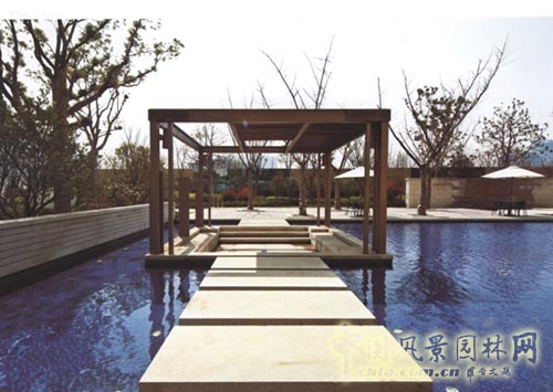 作為無錫頂級社區(qū),具有明確的目標(biāo)人群。設(shè)計師將藝術(shù)性和功能性相結(jié)合,通過流暢的線條,大面積的草坪,簡潔的空間,還有水墨畫一般的水中倒影,打造浪漫式的禪意空間。