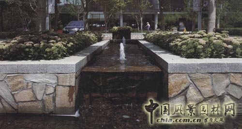 在項目中,還采用了一系列生態(tài)環(huán)保措施:如水系水充分循環(huán)利用;水系與周邊綠地進行結(jié)合,增加植被郁閉度,減少水中藻類滋生,在中心部分設(shè)置不同深度的水生植物種植區(qū)域,創(chuàng)造獨特的水體景觀。