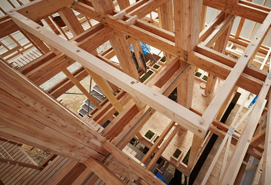 而一切的設計也是圍繞著這個生態系統而產生的,首先將植物種子分布在陽光和水分充足的方位。長成后將其懸掛在半透明幕墻與內部茶室之間有利于空氣流通的木框架梁上。食物的加工處理位于建筑底層夯土墻內,分享則于“懸掛”在建筑中心位置的茶室進行。