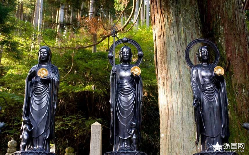 這座日本規模最大的墓地位于關西山(距大阪約48公里)廟城鎮高野山。墓地以弘法大師的陵墓為圓心,環繞著數千座遠道而來朝圣的人們點亮的黃銅油燈。