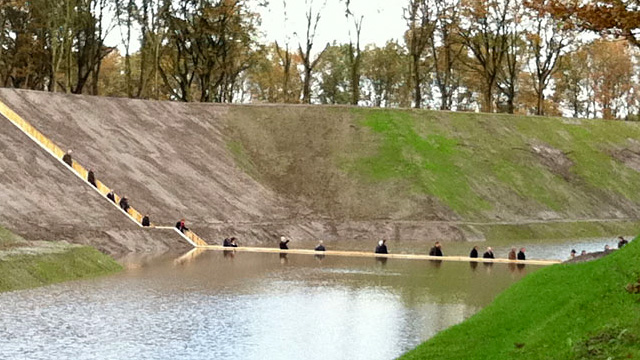 這座橋不是為了數(shù)千年前古代以色列人經(jīng)紅海逃出埃及時修建的,而是前往荷蘭境內(nèi)一處炮臺參觀的必由之路。這座Moses橋架在護城河水位以下,藏在水里。炮臺和周圍環(huán)境被還原成17世紀的樣子。