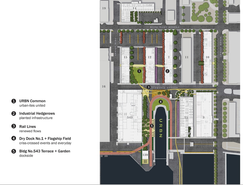景觀設(shè)計(jì)師在充分尊重費(fèi)城海軍船廠悠久歷史的前提下,對(duì)美國(guó)服裝零售企業(yè)Urban Outfitters (URBN)園區(qū)內(nèi)的景觀重新進(jìn)行了富有創(chuàng)造性的設(shè)計(jì)。用藝術(shù)的手法對(duì)可回收材料進(jìn)行重新塑造,可以最大限度的減輕過(guò)往產(chǎn)品中過(guò)重的工業(yè)痕跡,同時(shí)產(chǎn)生富有活力的社區(qū),并聚集生態(tài)效益。該地塊位于通往德拉瓦河的城市中軸線上,URBN將原本的企業(yè)私有用地對(duì)外開(kāi)放,作為對(duì)費(fèi)城公共空間的一種補(bǔ)充和延伸,這個(gè)項(xiàng)目也是工業(yè)用地重建的一個(gè)典型代表。