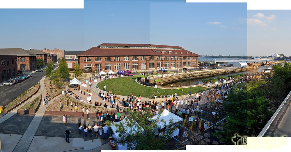 Urban Outfitters總部是由一片位于美國海軍造船廠歷史核心區的占地9英畝的土地改建而成,這片區域在19世紀時曾經是費城的聯盟島嶼。URBN的四家組成企業冒險放棄了原先位于市中心繁華地段的廠址,抓住機遇,通過對于位于寬街的城市軸線上、正對著德拉瓦河的干涸的碼頭周圍500米范圍內的一系列大型磚石結構建筑的適當回收利用,在德拉瓦河沿岸建立了一個新的聯合園區。舊址上遺留了眾多先前海軍人員建設的痕跡,為創建一處新穎、富有活力的精美景觀空間奠定了良好的基礎。