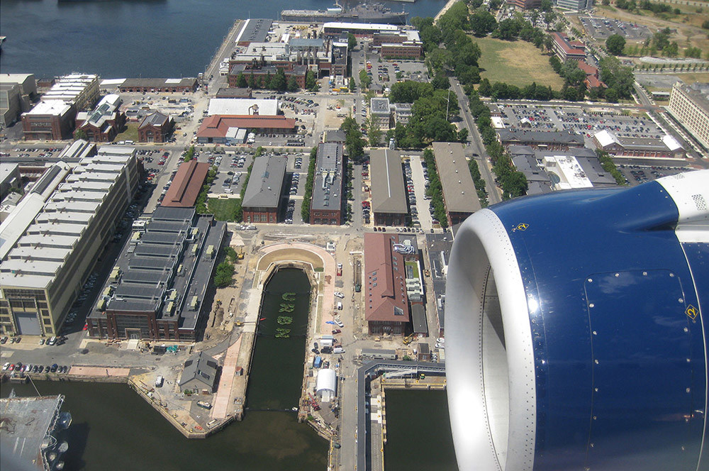 盡管美國海軍在1996年就遷離了這座島嶼,他們在這里留下的工業遺存至今仍完好無損。除了部分原有道路被鋪設了瀝青之外,長達一英里的舊鐵路線和起重機軌道,為園區提供了縱貫南北的多樣化的道路網絡。從道路結構、地面系統及植栽布局三方面入手,項目設計對舊時工業生產化的固有格局進行了徹底的整合與改造。全新及修復性景觀元素的注入,使得坐落在周邊的大體量建筑、停泊在港口的巨型戰艦以及盤旋在場地上空的巨型噴氣式飛機顯得更加的崇高和莊重。在URBN設計理念的啟發下,景觀設計師通過豐富的光影變化,塑造出強勁清晰的景觀框架,策劃出新的生產線,并對整個園區進行了整合,使之與場地固有的環境融為一體。