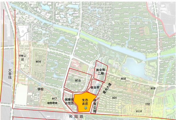 生態農莊位于香河富力新城保障房示范區項目東側,V01西側,北為H16項目,南臨和園路。現狀有一片面積較大的防風楊樹林。總占地面積約5萬㎡,楊樹林約占2萬㎡。