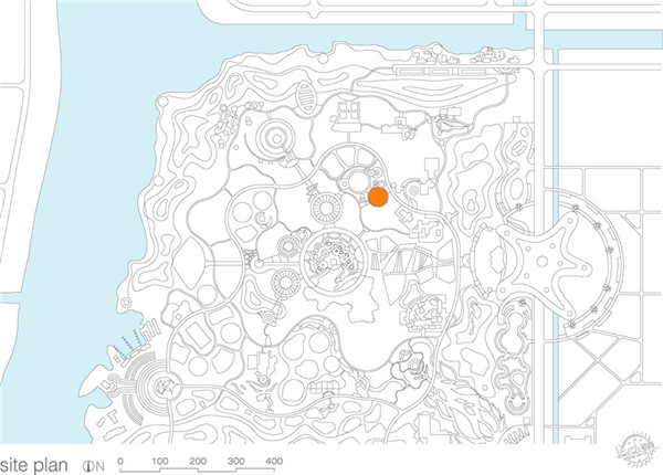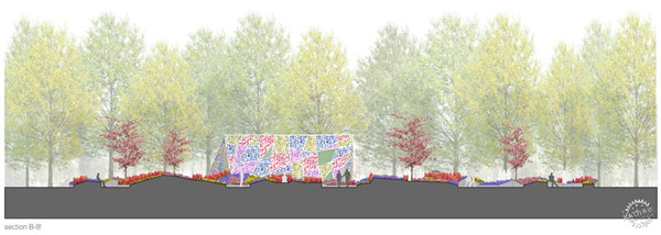 20位來自世界各地的設計師受托在連接公園內(nèi)不同地點的各功能區(qū)域的一個近圓形的區(qū)域內(nèi)設計20個項目,每個項目都獨具設計者所代表的文化背景。