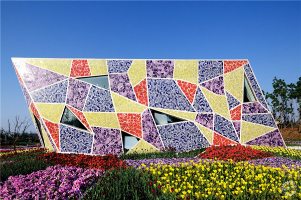 并且,這個幾何形狀表現為由當地中國碎瓷片組成的四種不同類型和顏色的花朵的多色馬賽克圖形。花朵和陶瓷形成多彩的馬賽克,將自然和本土技藝聯系在一起。