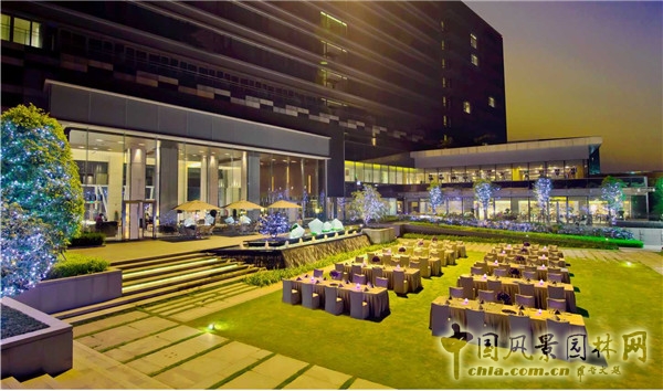 多功能草坪(婚慶空間)結合水景及燈光營造浪漫的氛圍。