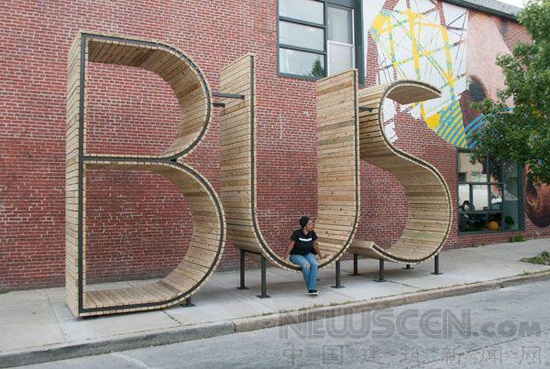 WaterGeiger設計了這些白色、曲線型的纖維加強型聚合板,把藝術帶入到公共空間里,同時也為公交乘客提供急需的陰涼地。其他創意性設計包括太陽能電池板和綠色屋頂結合而成的遮蓬,或是其他顯著的設計如馬德里藝術家聯盟Mmmm在巴爾的摩Highlandtown社區東南大道上設計的車站,那里的車站結構是14英尺高、7英尺寬的“BUS”字母。
