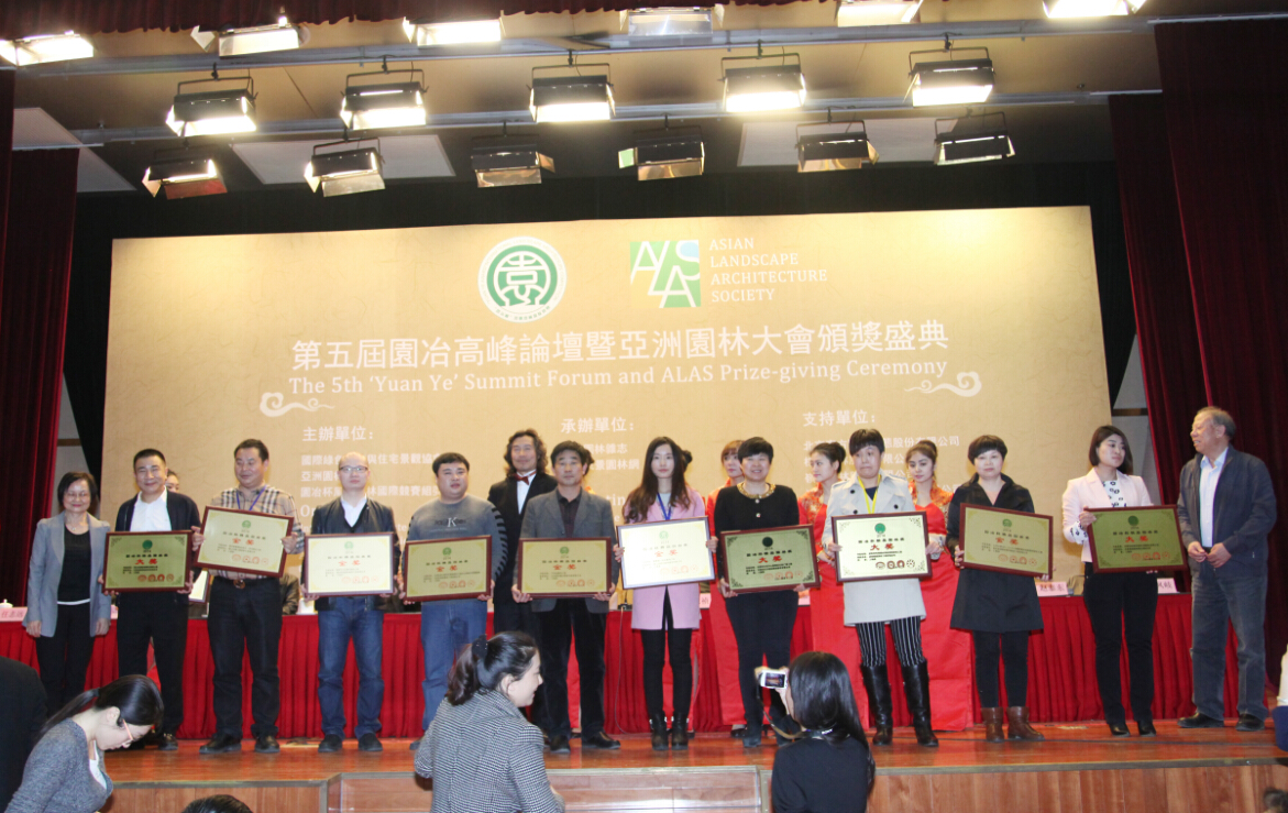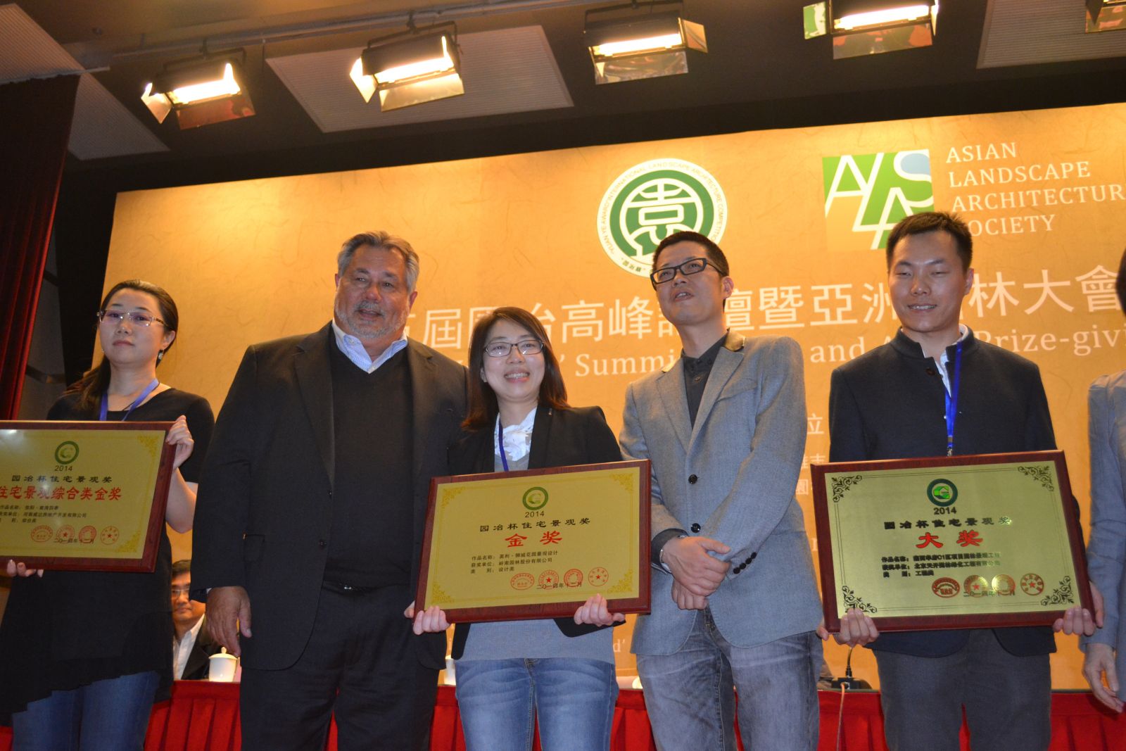 在3月20日下午舉行的頒獎儀式上,共頒發了"2014園冶杯大學生國際競賽"、"園冶杯住宅景觀獎"、"園冶杯精品園林獎"、"城市園林綠化綜合競爭力百強及十佳園林企業"等多項園林行業重量級大獎。在頒獎儀式上為獲獎師生及企業頒獎的嘉賓有:住建部原總經濟師、中國建筑裝飾協會會長李秉仁、中國工程院孟兆禎院士、盧耀如院士、亞洲園林協會主席王小璘、中國城市規劃協會副會長任志遠、EDSA創始總裁道格拉斯·庫曼、法國著名景觀設計師杰奎琳·奧斯蒂、亞洲園林協會副主席、韓國生態園林協會會長趙泰東、馬來西亞景觀建筑師學會會長奧斯曼·莫哈末·塔希爾、香港園境師注冊局局長、原香港園境師學會會長陳弘志等。