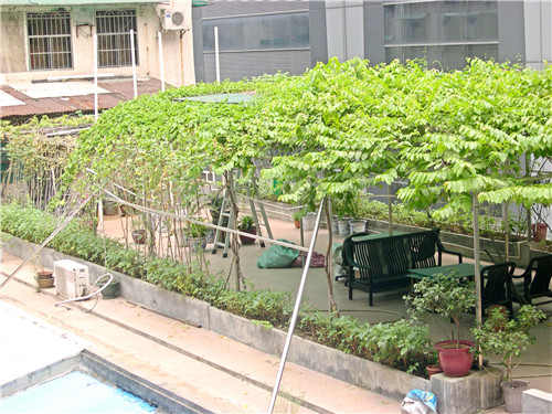 (三)平臺型的高層樓頂,可采用這一方法,既解決樓頂綠化,又不影響使用樓頂的活動空間。