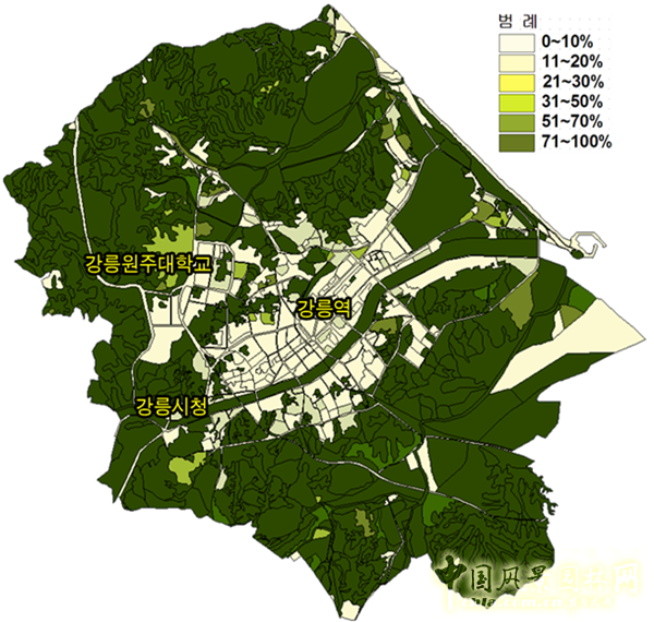 江陵市及周邊綠化率