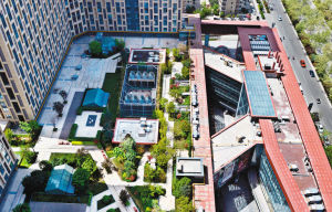 花園式屋頂綠化是要求根據建筑物面荷載,選擇小喬木、灌木、地被植物等材料進行的綠化方式,設置園路、座椅、亭子、水池、小橋和假山等園林小品供人們休憩、游覽。組合式屋頂綠化要求在屋頂承重處配置花池、選擇灌木、地被植物并利用容器苗擺放的屋頂綠化的方式,設置園路、座椅。草坪式屋頂綠化是指利用地被植物或藤本植物進行屋面綠化,并配有滴灌或簡易噴灌設施,一般不允許非維修人員活動的簡單綠化,設置維修步道。