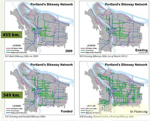 作為一個(gè)比較著名的騎行城市,自行車網(wǎng)絡(luò)進(jìn)行了詳細(xì)的規(guī)劃。2009年的密度如上圖,規(guī)劃大2030年希望能形成1500公里的自行車網(wǎng)絡(luò)體系。值得一提的是,城市面積只有377平方公里,這和我們國(guó)家目前的情況非常的類似,但是和我們現(xiàn)在大力的壓縮非機(jī)動(dòng)車道的做法正好相反,該地區(qū)的交通網(wǎng)絡(luò)是非常完善的。
