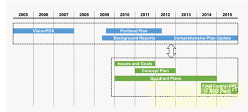 在規劃評估和修改當中,每年都會發布規劃的季度報告,包括規劃管理以及規劃變更的季度報告。上圖是總規,顯示的是歷年的修改計劃。我國總體規劃中雖然沒有法定規定總規修編的時限,但是一般各個城市執行的都是5年左右修編的間隔。波特蘭總規的修編并沒有一個大規模行為,但是如果通過法定程序修改了總體規劃的一些內容,這些內容就會作為備案,下次修改的時候自動成為修改的依據和內容。這樣的修改每年都有很多次,最多的一回是1996年修改了6次。修改大部分是基于平時的論證,所以規劃沒有集中的大規劃的修編程序。