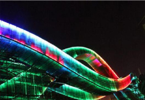 據(jù)介紹,由于三條步行道相互交錯,鋼結(jié)構(gòu)三向扭曲,該項(xiàng)目施工難度較大;又加上建筑外飾面雙向變化,每塊建筑外飾板均需預(yù)制,12萬余個點(diǎn)光源通過槽板內(nèi)置于內(nèi)飾板與拉伸穿孔鋁板之間,工藝精細(xì),施工標(biāo)準(zhǔn)非常高。