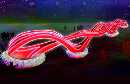 試燈當(dāng)晚,在夜色的襯托下,“中國結(jié)”步行橋婀娜多姿的身影時而紅彤彤,時而湛藍(lán)藍(lán),五彩繽紛的燈光效果把建筑襯托得煞是驚艷,讓路人嘖嘖稱贊。