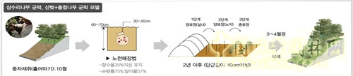 對于植物的選定,我們選擇了一些最合適在山上生長的植物,它們的作用主要是防止水土流失。如圖中的過程所示,我們先從周邊的山區選定了一些樹種做試驗,長得好的樹種就移植到山上。而在另外一些不是特別急于改造的地方,我們種了一部分樹,并讓它自然發育,自發繁育成樹林,以慢慢恢復。