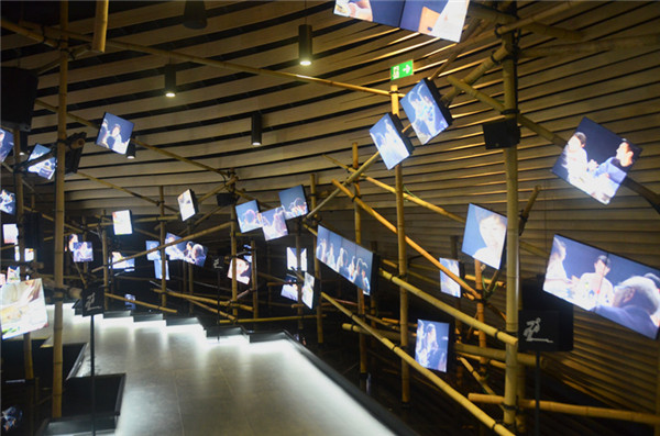 展館內(nèi)一層的展覽由Ralph Appelbaum Associates設計。由大約200片竹簾構成,圍繞著一個反光的水池。二層有活動室和貴賓室,其中一些室內(nèi)設計由里伯斯金親自操刀,包括一座玻璃吊燈和一件架設裝置。