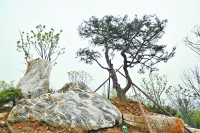 從東西湖金南一路進入園博園,昔日臭氣熏天的垃圾山一經覆土,形成了峰谷相間的荊山,山上的喬灌木錯落有致,煥發生機。荊山北區最高峰的一棵蒼勁的黑松格外醒目,與身邊的泰山石搭配后,頗有迎客松的味道。馮啟國說,園博園內有20多種類似黑松的特選樹,都是一一預審過樹木照片,精選形態最好的入園栽種。