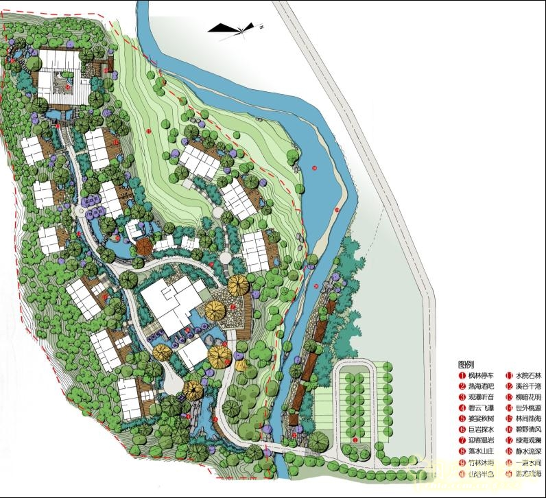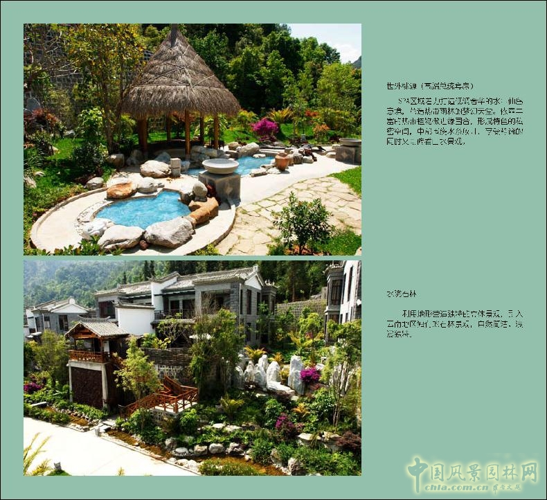 這是公共SPA區和總統套房的內部效果。這種山地的場景最后建成和效果圖一定是不符的,當時圖上畫的可能是很厚的密林,但實際上加上擋土墻之后就種不了那么多了。