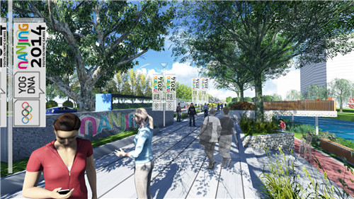 作為城市名片的道路景觀,首當其沖的凸顯出城市的精神面貌。設計師們希望打造一個全新的景觀面貌來向大家展示南京的文化,設計中運用了南京城墻的光陰,法國梧桐樹的林蔭,以及南京本地的光影等設計元素,向世人展示老城與新城之間的靈魂聯系,和文脈的相輔相成。各種城市的印象激起了設計者的靈感:“古老的明城墻”,“中山東路的法國梧桐”,“秦淮河的夜泊秦淮人家”等,回憶起那些兒時的生活印象,讓身為南京本地人的設計師們感到一種暗自的責任與興奮。