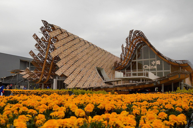 以聲光稻田為「希望的田野,生命的源泉」主題呈現、面積僅次於德國的中國館。