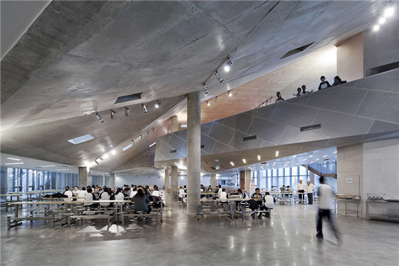 與常規(guī)的學(xué)校以教學(xué)空間為主的設(shè)計(jì)不同,設(shè)計(jì)團(tuán)隊(duì)為北京四中房山校區(qū)創(chuàng)造了大量社交空間,尺度不一,亦考慮到了不同程度的私密性,這樣的設(shè)計(jì)鼓勵(lì)師生在整個(gè)建筑之中漫步、玩耍或是交流,教學(xué)空間被延展至戶外,部分活動(dòng)也能夠被帶入室內(nèi),一方面提高了空間使用率,另一方面也讓校園內(nèi)的學(xué)習(xí)生活變得更富于樂趣。
