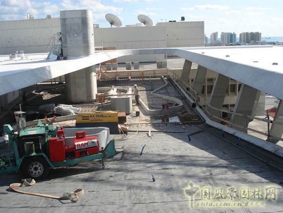 停車場頂部施工現場。其下方第七層樓是多功能的公共空間。