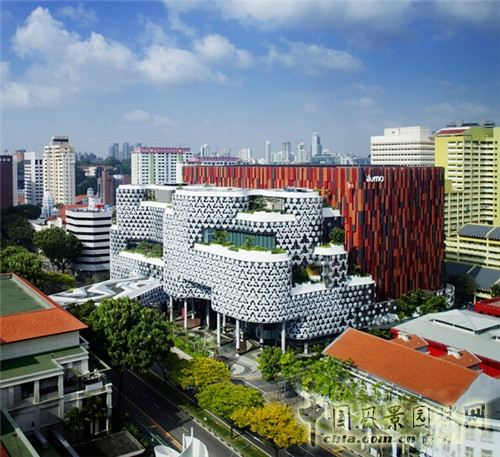 Iluma商業中心,位于新加坡著名的白沙浮街區(BugisStreet)維多利亞大街201號。它是新加坡最為著名的購物區。WOHA建筑事務所強調每一個項目都是獨特的,設計中應當包含此項目的獨特個性,注重現代感、地域及環境因素。這個項目也不例外,通過顏色、結構的整合變化,創造出多樣的、充滿活力和創造力的環境,營造人性范圍,不斷完善城市的建筑環境。