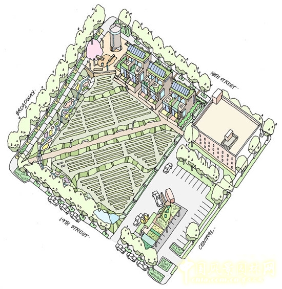 18Broadway占地約為1.4英畝,涵蓋了比環(huán)境管理更廣泛的概念,它將水、食物、住房、能源、節(jié)能和可持續(xù)在一個(gè)地方用最佳的方式結(jié)合起來。它作為一個(gè)示范項(xiàng)目,具有深遠(yuǎn)的影響。或許它將成為新興技術(shù)測量和研究的地方,成為一個(gè)活生生的天然實(shí)驗(yàn)室。