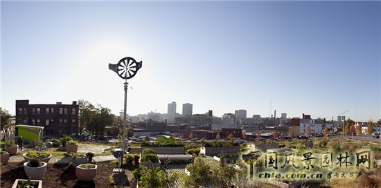 中國風(fēng)景園林網(wǎng)訊 堪薩斯城是美國密蘇里州的第一大城市,2008年的秋天,DST公司決定在堪薩斯城的十字路口區(qū)做一件重要的事情。于是邀請360建筑公司的建筑師和設(shè)計(jì)師參與進(jìn)來,共同商議建造一座雨水花園,用以解決當(dāng)?shù)氐挠晁刂茊栴},同時(shí)也讓人們了解雨水花園,學(xué)習(xí)如何創(chuàng)造綠色的居住環(huán)境。