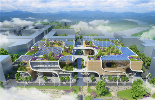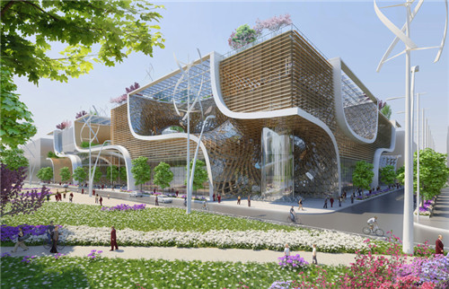 項目坐落于廬山和鄱陽湖之間,該項目旨在偏遠不發達區域促進一種平衡的生活方式,不管是生活上還是工作上,私人和公共應用都能充滿活力且注重環保,注重環境友好。在這個宗旨之下,“木制蘭花”為當地居民提供了一個巨大的購物綜合體,同時包括圖書館、體育中心、有機食品場合農貿市場。