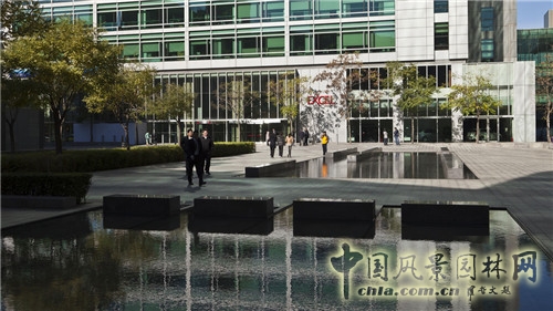 在每一個城市街區(qū)中都設置了一系列私密的花園空間。園中小路縱橫交錯,樹籬起到了很好的隔斷作用,一系列水池、水墻等水元素的利用強化了建筑與景觀間的聯(lián)系,更將天空的藍色倒映其中,讓建筑融入自然。