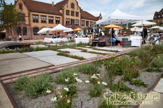 該項目位于德國弗萊堡市,由Dreiseitl工作室設計。之前,這里是歷史悠久的海關大廳,2009年修復成為現在的廣場。它完全擺脫了污水處理系統(tǒng),成為水敏性城市設計的典范。