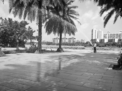 南寧市濱湖廣場地面滲水演示。