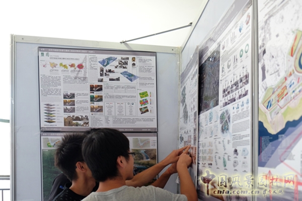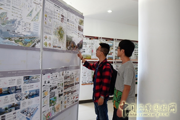 2014"園冶杯"風(fēng)景園林國際競賽獲獎作品巡展于5月23日在云南大學(xué)城市建設(shè)與管理學(xué)院學(xué)術(shù)長廊隆重舉行,來自云南大學(xué)、北京林業(yè)大學(xué)、北京大學(xué)、南京林業(yè)大學(xué)、中南林業(yè)科技大學(xué)、同濟大學(xué)等大學(xué)獲獎作品整齊掛列在宣傳展板中,展示了我國風(fēng)景園林設(shè)計的多種風(fēng)格和面貌。自展覽開始,眾多學(xué)子匯聚于此,仔細觀摩,現(xiàn)場討論,是師生學(xué)習(xí)、交流一種很好的形式。