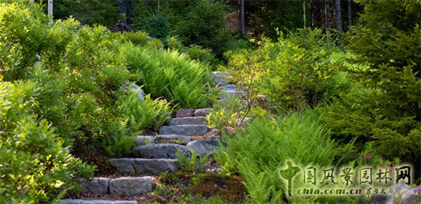 阿卡迪亞風(fēng)情的磚石臺階巧妙連接了不同空間的景觀,精心布置的林間小道指引著游人去探尋這里的獨特景致。