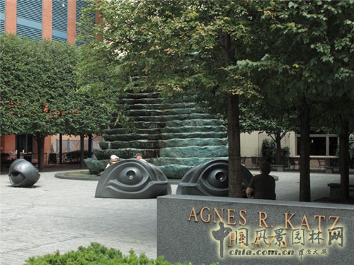 中國風景園林網訊 Agnes R. Katz廣場是1998年丹·凱利工作室設計完成的作品,這個廣場為當地的人們舉行音樂和藝術活動提供空間。這是一個充滿藝術氣息的公共廣場,位于匹茲堡的文化城區,第七大街和賓夕法尼亞大街的轉角處。廣場的面積是0.5英畝,在1999年正式對外開放。