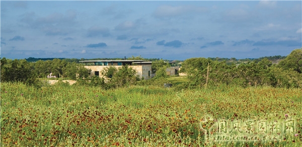 到達山頂,掩映于成群天人菊中的住宅主建筑便顯現在眼前。
