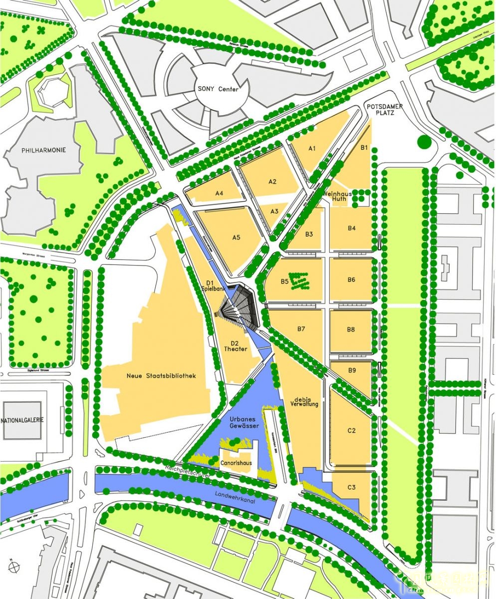 德國柏林的波茨坦廣場是一個屢獲殊榮的水景項目,由Dreiseitl工作室設計。廣場的設計將水資源的可持續利用和娛樂結合起來,使城市市民和游客深刻感知水環境問題。除了生態效益,水環境還具有文化和藝術的氣息,吸引了眾多在此休閑和辦公的人們。