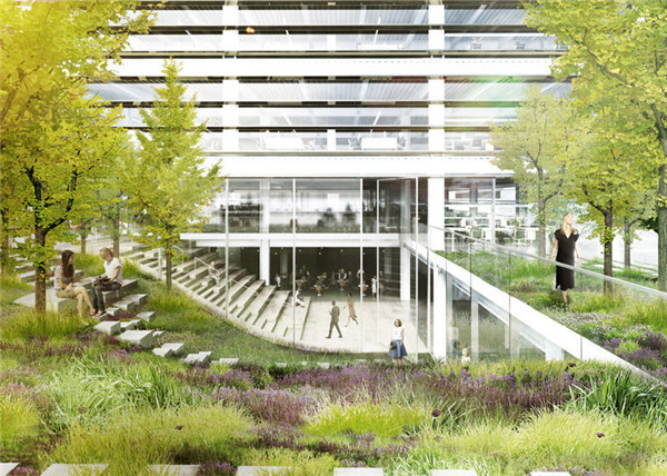 據(jù)BIG設(shè)計(jì)團(tuán)隊(duì)透露,這座呈梯田狀的建筑將為周邊城市景觀提供“充滿綠意盎然的景致”。他們將這個(gè)設(shè)計(jì)方案描述為一種新的混合形式,是現(xiàn)代摩天大樓與對(duì)歷史建筑的現(xiàn)代詮釋的結(jié)合體,“世貿(mào)中心2號(hào)樓恰好處在兩個(gè)風(fēng)格完全不同的街區(qū)的交匯處,一面是充斥著現(xiàn)代摩天大樓的金融區(qū),另一面則是曼哈頓下城的TriBeCa時(shí)尚街區(qū),滿是閣樓公寓及屋頂花園。BIG想要結(jié)合兩個(gè)街區(qū)的獨(dú)特氣質(zhì),集合于這整幢建筑,一方面想要尊重其建筑原址的紀(jì)念與歷史地位,另一方面亦想通過新塔重振曼哈頓中心的朝氣與活力。