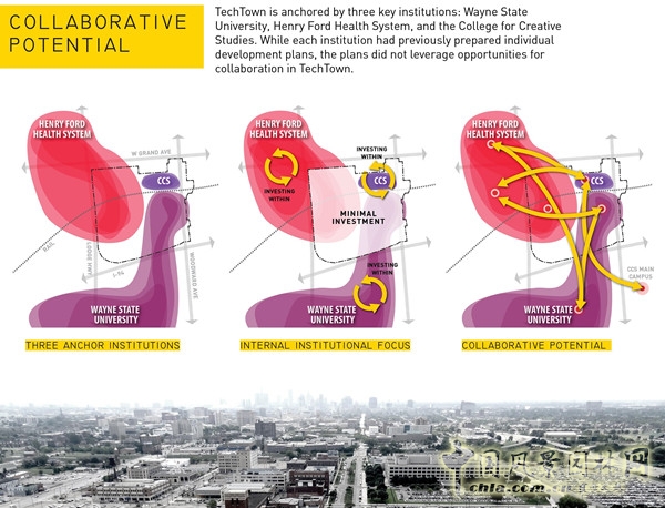 合作潛能:三家核心機構將會入主科技城,它們分別是韋恩州立大學、亨利·福特醫療集團和創意設計學院。盡管三家機構先前均有各自的規劃,但這并沒有影響其在科技城中的協作。