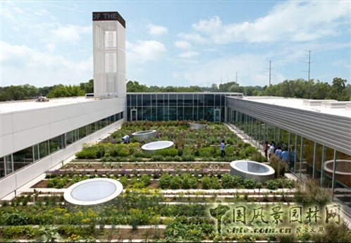 中國風景園林網訊 美國青少年中心屋頂綠化項目獲得2010ASLA專業榮譽獎項、2009年榮獲健康城市屋頂綠化杰出獎、2007年美國建筑學會芝加哥地區杰出設計獎。這個植物綠色屋頂花園的設計,在傳統的綠色屋頂設計基礎上,增加了額外的活動空間,供以戶外教學,豐富了屋頂綠化的設計意義。青少年中心聘請一個全職的園藝師,利用Hoerr Schaudt景觀設計事務所專門設計的植物種植系統,來教導市內的青少年們進行園藝種植的技巧和方法。這個花園最多可以供兩個熱源的運行,其他的熱量來自于中心建筑和太陽能,這樣可以使花園全年都能達到適宜植物生長的溫度。花園中近一英尺的土壤深度,能給多種多樣的植物種類提供生存保障。