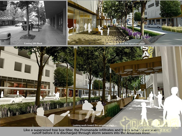 如同一個(gè)大型的過濾樹箱,步道可在雨水瀉入阿肯色河之前將其收集再利用。