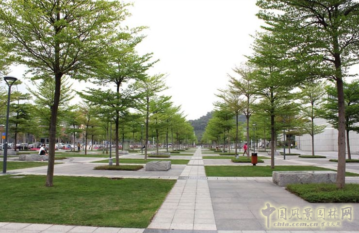 1、樟樹移植技術、工藝及新材料的應用。為減少深圳天氣炎熱帶來的水分蒸發,新移植的大規格樟樹的主干使用遮光網進行覆蓋,減少曝曬,并適量地對部分長勢較弱的樟樹噴灑生長素,促進根系的恢復,提高成活率。移植時一方面要做好保濕一方面又要加強排水設施,樹池底部上先布置毛細纖維管,再在上面蓋2~3層玻璃纖維布,最上面才是覆土種植苗木;為保證大規格樟樹的成活率,部分還采用了新型RZSW根部灌水器技術。