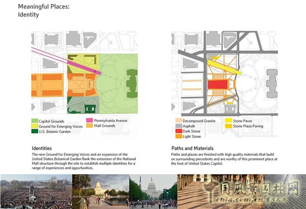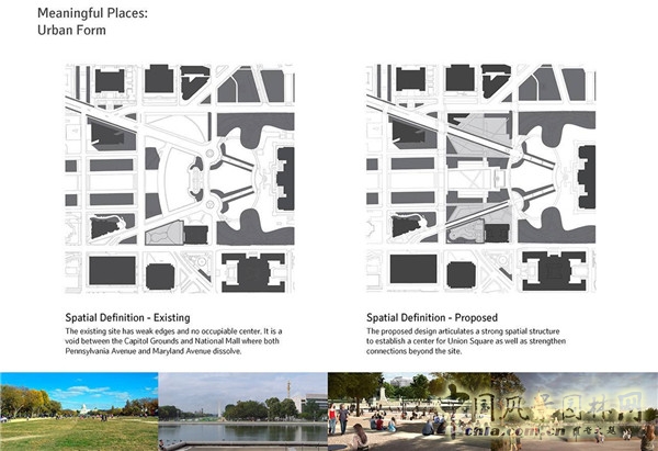 方案中空間的層次感及步道的設計均提高了聯合廣場與周圍重要建筑景觀的聯系,包括國會大廈、國家廣場、美國植物園、賓夕法尼亞大道、馬里蘭大道、路易斯安那大道等。